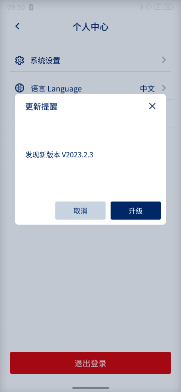 如果APP有可用的新版本,菜单栏会显示红色小点提示需更新APP。点击”检查更新”将弹出更新对话框,点击升级下载并安装新版本。